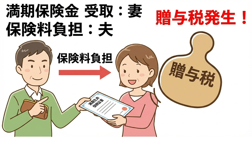 では、受取人が妻の場合はどうでしょう?夫が「保険料を負担して減少した預金が満期返戻金となって妻が受け取った」ことになり、妻の贈与税の対象となります。解約した積立定期金を妻にあげたことと一緒の扱いですが、生命保険に形を変えると途端に分かりにくくなりますね。