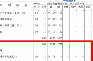 「倍率表なのに漢字が書いてありますが?」と聞かれる事があります。実は、この漢字部分が倍率表の表題の「固定資産税評価額に乗ずる倍率等」の「等」の部分なのです。宅地欄には「路線」と書かれているところがありますが、これは「この […]