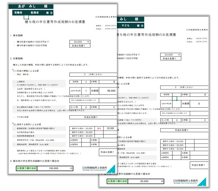 | 贈与財産の価額が1000万円超 | 別途お見積り |